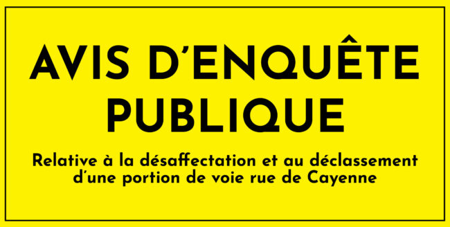 Avis d’enquête publique : relative à la désaffectation et au déclassement d’une portion de voie rue de Cayenne