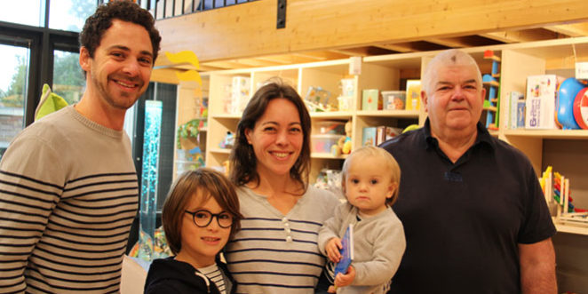 En photo, de gauche à droite : Jérémy Chesneau, responsable de la Ludothèque, Léa Gamache et ses enfants, Margaux et Maël, ainsi que Jean-Paul Guyomar, Conseiller municipal en charge du suivi du projet de Ludothèque.