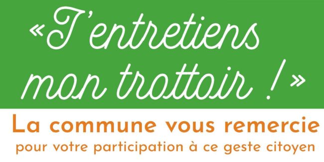 La commune vous remercie pour votre participation à ce geste citoyen. « Le nettoiement des trottoirs et des caniveaux incombe aux propriétaires et locataires des immeubles riverains de la voie publique. Il leur revient de maintenir en bon état de propreté les trottoirs et les caniveaux sur toute la largeur, au droit de leur façade. » –…